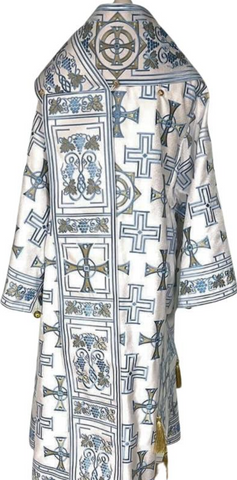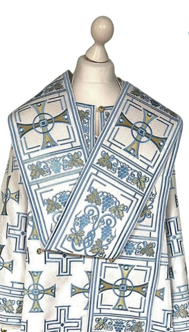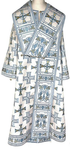 Gold, Silver or Colour Embroidery. Includes: (8 Items)Sakkos, Zone, Palitsa, Epitralhilion, Cuffs, Small and Large Omophorion, Sulok. (Custome made in any liturgical colours)